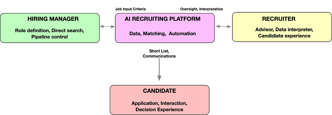 Maar ook de interne rol van de recruiter zal dus sterk gaan veranderen, voorspelt hij. Dankzij de opkomst van A.I. zal ‘de hiring manager steeds meer centraal komen te staan in het recruitmentproces, terwijl de recruiter een meer strategische, adviserende en interpreterende rol op zich neemt.’ Hiring managers kunnen steeds meer zelf, en zijn steeds minder afhankelijk van de recruiter in het proces, denkt hij. Die kan op zijn beurt steeds meer evolueren tot een soort talentadviseur: experts in data interpreteren, managers begeleiden door de bias en beperkingen van A.I. en naleving van vereisten waarborgen op het gebied van fairness en transparantie.