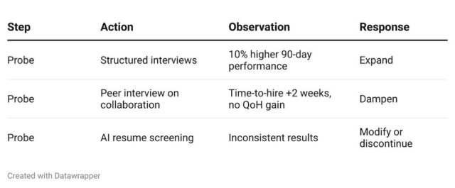 En precies dat is het geval bij recruitment, zegt hij. ‘Dit vereist nederigheid over wat vooraf bekend kán zijn en vertrouwen in ons vermogen opkomende patronen te herkennen en erop te reageren. We moeten accepteren dat recruitment nooit perfect voorspelbaar zal zijn, terwijl we tegelijkertijd moeten volhouden dat we het systematisch kunnen verbeteren door intelligente experimenten en patroonherkenning. De kwaliteit van recruitment kúnnen we meten, maar alleen als we stoppen met doen alsof het een ingewikkeld probleem is dat wacht op de juiste formule, en het behandelen als de complexe, adaptieve uitdaging die het in werkelijkheid is.’