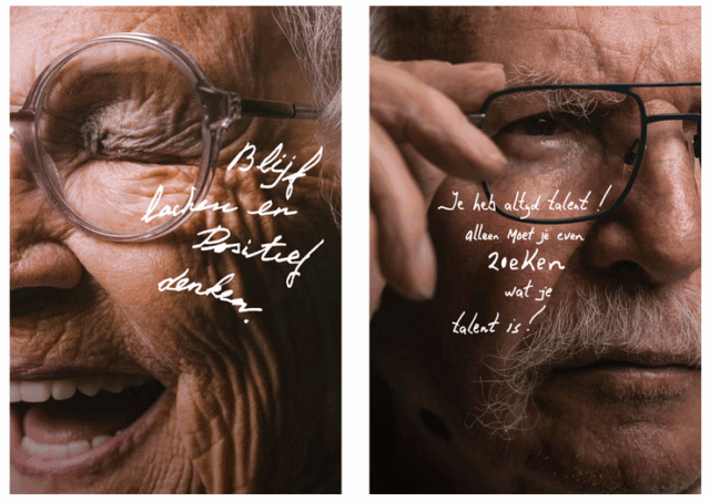In de beelden en video’s van de campagne staan dan ook bewoners centraal die hun levenslessen delen – over liefde, verlies, geluk en veerkracht. De portretten, gemaakt door fotograaf Nanda Hagenaars, tonen de schoonheid van ouder worden en de verhalen die in iemands gezicht geschreven staan. De bewoners vertellen in hun eigen woorden wat zij in het leven geleerd hebben en wat zij aan jongere generaties willen meegeven. Zoals de 94-jarige Wil, die je leert hoe je in het leven moet staan. Ans (eveneens 94) herinnert je eraan wat echt ertoe doet. En de 81-jarige Marijke deelt haar geheimen voor een gelukkige relatie.