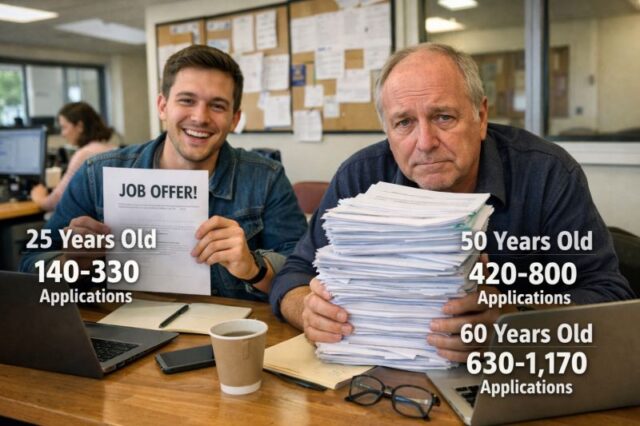Voor een vijftiger gaat het dus om een 3 keer zo kleine kans op een uitnodiging als een 25-jarige. ‘Dat is geen typfout. Dat is de realiteit’, aldus Dawkins. ‘En de cijfers zijn vrijwel zeker ook nog eens conservatief, omdat deze studies werden uitgevoerd toen de arbeidsmarkt nog gezonder was. Maar als de arbeidsmarkt krapper wordt, zijn het vooral oudere werknemers die de dupe zijn. De werkelijke cijfers van vandaag? Waarschijnlijk nog slechter.’