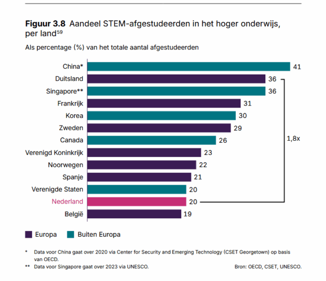 Ook bepleit hij het behoud en zelfs verbreding van fiscale voordelen voor kenniswerkers, zoals de 30%-regeling. Hoogproductieve kennismigranten hebben namelijk meteen positieve effecten op de schatkit, stelt hij. En, daarop aanvullend: ‘maak het financieel aantrekkelijk voor studenten van buiten de EU om hier STEM-opleidingen te volgen.’