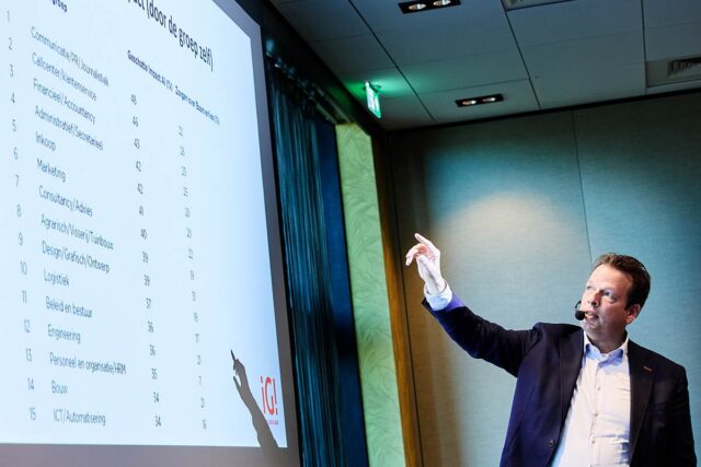 De slotwoorden van de ochtend waren vervolgens voor Intelligence Group-directeur Geert-Jan Waasdorp, die onder meer inging op de ‘aardverschuiving in baanzoek- en vindgedrag op de arbeidsmarkt’, die A.I. momenteel veroorzaakt. Hij liet onder meer zien hoe je als werkzoekende zelf makkelijk een agent kunt bouwen die voor jou passende vacatures gaat zoeken. ‘Dit verandert het zoekgedrag totaal, maar ook het hele spel van recruitment of employer branding’, vertelde hij, daarbij voorspellend dat in 2030 zo’n 70% van alle staffers en 90% van alle jobboards hierdoor zonder werk zullen komen te zitten.