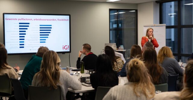 De behoefte aan een vast contract daalde met 4 procentpunt. Daartegenover staat een forse toename in de vraag naar flexibiliteit: keuzevrijheid in werktijden, aantal werkdagen en contractvorm. Zelfroosteren werd in de zaal genoemd als een instrument dat op pilotafdelingen succesvol is, maar zelden organisatiebreed wordt uitgerold. Het lost niet altijd alles op, maar het voorziet in een grote behoefte van flexibiliteit én zorgt dat mensen meer uren gaan maken.
