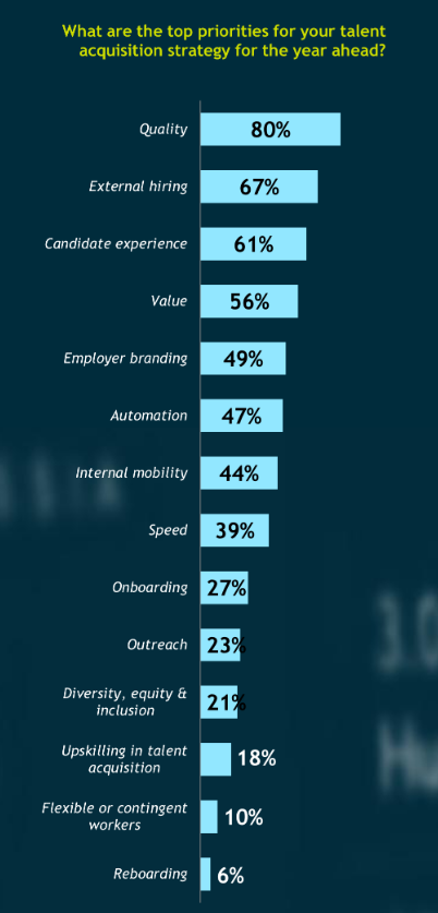 De meeste TA-teams blijken niet in staan om systematisch vast te stellen of hun aanpak succesvol is en succesvolle, hoog presterende en impactvolle kandidaten oplevert. Minder dan 40% zegt een routinematige aanpak te hebben om hun recruitmentproces door te meten, en slechts 1 in de 10 meet ook daadwerkelijk de prestaties van recruitment. Iets dat de onderzoekers overigens al járen tegenkomen, merken ze ten overvloede op. Wat de recruitment-afdelingen tegelijkertijd natuurlijk kwetsbaar maakt in geval van bezuinigingen en reorganisaties.