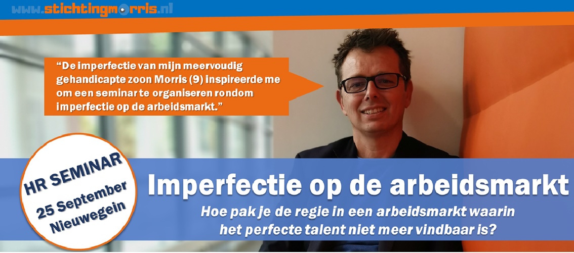 De imperfectie van zijn meervoudig gehandicapte zoon Morris (9) inspireerde Arbeidsmarktstrateeg Jeroen Moerenhout om een seminar te organiseren rondom imperfectie op de arbeidsmarkt: waarom blijven we zoeken naar superhelden en sluiten we de underdogs uit?