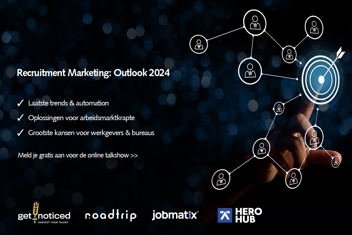 Maandag 22 april 2024 gaat host Martijn Hemminga in gesprek met diverse vertegenwoordigers van recruitment marketing bureaus en leveranciers. Welke trends zien zij, welke rol speelt AI en hoe zorg je ervoor dat je succesvol bent als bureau of werkgever met je recruitment marketing (automation)? Meld je direct gratis aan via het formulier waarbij je ook kunt aangeven of je het e-book wilt ontvangen dat in Q2 wordt gepubliceerd over dit thema.