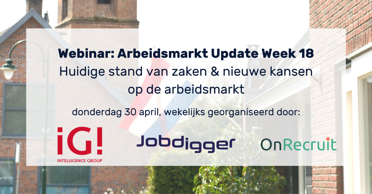 Nu de arbeidsmarkt snel verandert, hebben Jobdigger, OnRecruit en Intelligence Group de handen in een geslagen om wekelijks de meest actuele arbeidsmarktdata te presenteren via een wekelijks webinar op donderdag tussen 11:00 – 12:00 uur.
