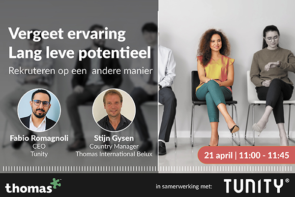 Recent onderzoek heeft uitgewezen dat 75% van de bedrijven die worstelen met rekrutering dit toeschrijft aan een tekort aan vaardigheden (SHRM, 2021). Gelukkig kan psychologische wetenschap informatie verstrekken over wervingsbeslissingen, waardoor bedrijven kunnen omgaan met schaarste aan vaardigheden.In het nieuwste webinar van Thomas International, onderzoeken we hoe je op betrouwbare wijze het potentieel voor succes van een kandidaat kunt voorspellen om de talentenpool te diversifiëren en complexiteit te beheren. Sluit je aan bij Stijn Gysen, Country Manager van Thomas International Belux, en Fabio Romagnoli, CEO van Tunity Group op 21 april 2022 om 11:00 uur.