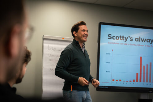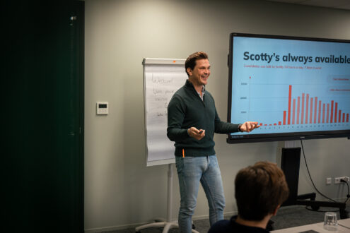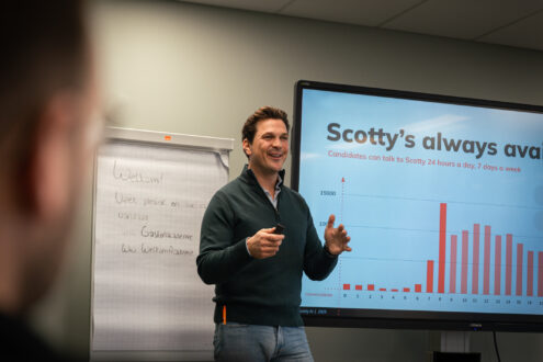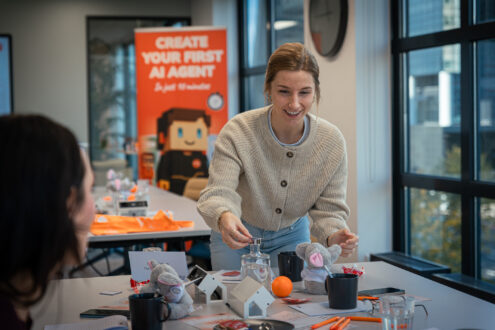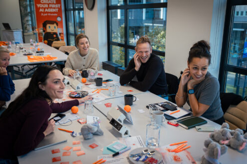 Onder begeleiding van de experts van Scotty AI ontdekten deelnemers wat agentic automation concreet betekent, hoe het werkt in de praktijk en wat het kan opleveren voor het dagelijkse werk. In kleine groepjes werd gewerkt aan échte toepassingen, met ruimte voor experimenteren, leren én lachen.