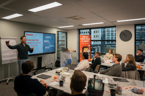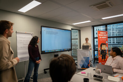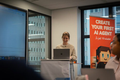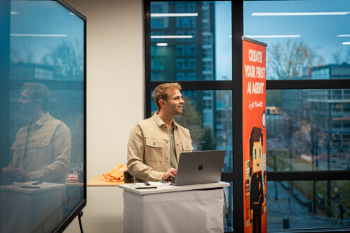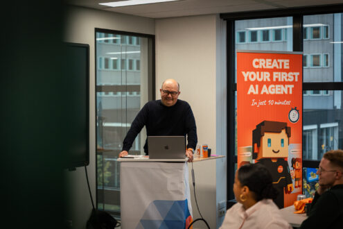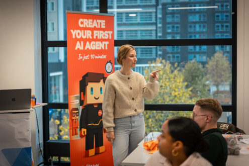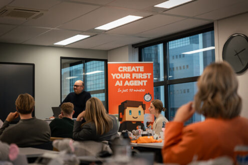 Genoeg van het lezen over AI? Tijdens deze sessie gingen deelnemers zélf aan de slag. Geen droge theorie, maar een hands-on dag waarin iedereen stap voor stap zijn of haar eerste AI-agent bouwde – een digitale collega die saaie of tijdrovende taken kan overnemen.