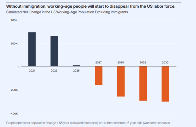 Daar komen volgens Lightcast trouwens ook nog 232 miljoen gemiste werkdagen bij door alcoholmisbruik, omgerekend maar liefst 112.000 fulltime werknemers die een heel jaar afwezig zijn. De onderzoekers denken daarom dat arbeidsmigratie broodnodig is om een deel van het tekort aan in de Verenigde Staten geboren mannen van gevorderde leeftijd op te vangen. Sommige industrieën zouden nu al moeite hebben om zonder te functioneren. Volgens Lightcast is bijvoorbeeld 18% van de werknemers in de gezondheidszorg inmiddels van buiten de VS afkomstig, waaronder 1 op de 4 artsen en 1 op de 5 geregistreerde verpleegkundigen.