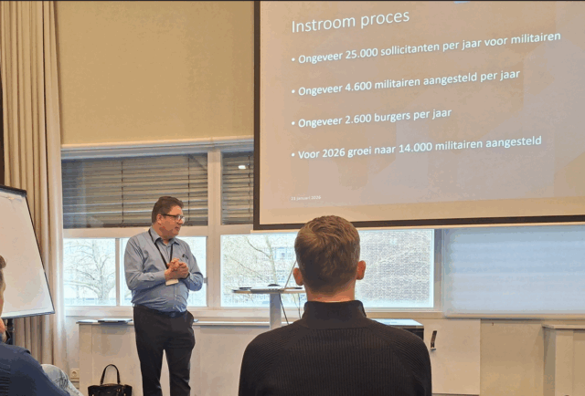 Rogier Burgwal, voluit ‘accounthouder BS/COMMIT/DOSCO bij Ministerie van Defensie’, maar begrijpelijker gezegd: hoofdverantwoordelijke voor de instroom van burgers bij Defensie, vertelt er nuchter over tijdens een netwerkmiddag voor arbeidsmarkt(data)specialisten op het 370 jaar oude marineterrein in hartje Amsterdam, waar nu nog onder meer de selectie van verse rekruten plaatsvindt. Maar ook hij laat wel doorschemeren dat de wervingsopgave voor Defensie dit jaar écht groot is, misschien wel groter dan ooit. Want de arbeidsmarkt is nog altijd krap. En waar haal je dan ineens 3 keer zoveel sollicitanten vandaan?