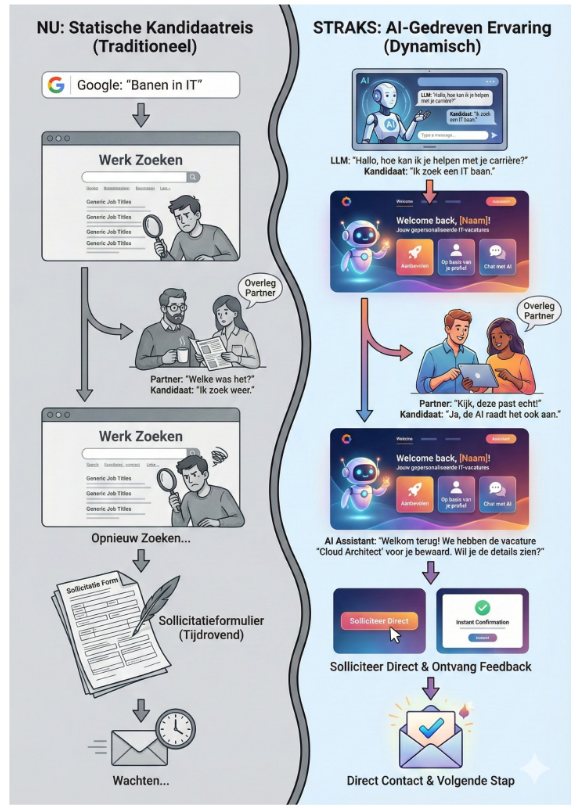 A.I. dwingt ook om scherp en consistent te communiceren wat hen uniek maakt. Vage claims als ‘wij zijn innovatief’ werken niet meer; A.I. selecteert werkgevers op concrete waarden en onderscheidend vermogen. De komst van search via LLM’s zal dit meer afdwingen. Bij traditionele search krijgen grote organisaties van nature meer aandacht. Nu wordt het voor kandidaten makkelijker specifiekere zoekopdrachten uit te voeren. Zo zal een organisatie die van generatieproof werkgeverschap bijvoorbeeld kernbeleid heeft gemaakt vaker vermeld worden in een LLM search dan de organisatie die ook ergens iets voor alle generaties op de werkvloer doet.
