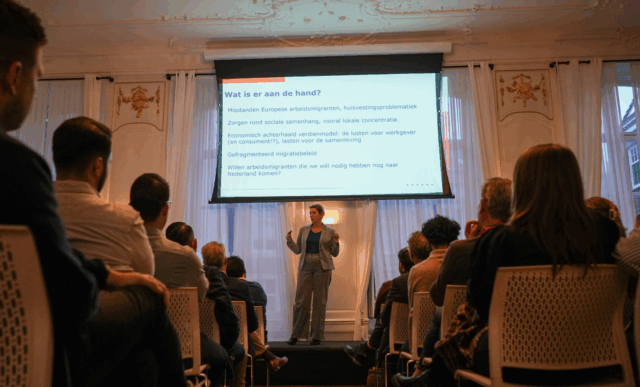De paneldiscussie tekende de spanning die op het thema ligt, en die ook deze middag goed naar voren kwam. Enerzijds zorgt de vergrijzing ervoor dat we steeds meer mensen buiten de grenzen moeten zoeken om het werk gedaan te krijgen, anderzijds is duidelijk dat dit ook weer voor problemen zorgt, bijvoorbeeld op het gebied van huisvesting en sociale integratie. Die tweespalt werd al meteen duidelijk bij de eerste spreker van de dag, de op z’n minst controversieel te noemen Jan van de Beek, een bekende stem in het migratiedebat en auteur van onder meer Migratiemagneet Nederland.