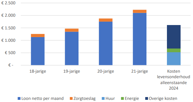 Maar het overgrote deel van de richtlijn blijft dus wel in stand. En dat heeft grote impact. Nederland heeft namelijk een notoir laag minimumloon. Zo verdienen 18-jarigen in Duitsland en België respectievelijk 1.038 en 989 euro méér per maand. Met het uurloon is het zelfs nog slechter gesteld. Het mediane uurloon van jongeren onder de 20 is in Nederland gecorrigeerd voor de prijzen lager dan bijna alle landen in Europa. Alleen jongeren in Bulgarije zijn nog slechter af dan Nederlandse jongeren, zo rekenden Jacob-Jan Koopmans en Vera Vrijmoeth recent voor.