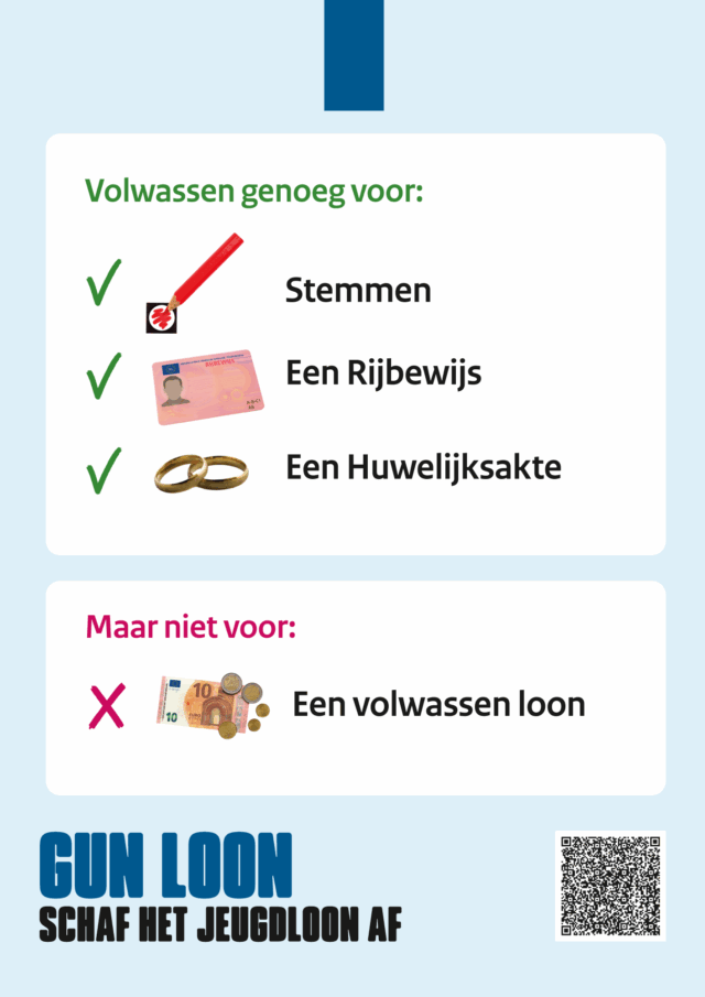 De recente uitspraak van het Europese Hof maakt die opstelling dus wel steeds moeilijker vol te houden voor het – huidige of komende – kabinet. Een 18-jarige (en dus volwassen) werknemer verdient vanaf 1 juli dit jaar 7,20 euro per uur. Dat is de helft van het minimumloon van een werknemer van 21 jaar en ouder, die dit jaar minimaal 14,40 moet verdienen. Volgens een peiling van kennisplatform Onderneming.nl eerder dit jaar vindt 45% van de Nederlanders dat jongeren zo eigenlijk worden uitgebuit door het huidige jeugdloonstelsel.