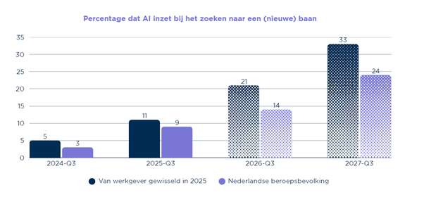 Het zoekgedrag van werkzoekenden ondergaat momenteel een ware revolutie. Dit geldt uiteraard niet voor de mensen die het digitale kanaal mijden (zie #1), maar bij de meesten wel. Bij de werkzoekenden die zich online oriënteren wordt A.I.-gestuurd zoeken (vooral via ChatGPT) het meest dominante kanaal.