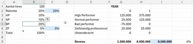 Op het moment dat je recruitment verantwoordelijk maakt voor de winstgroei van een organisatie, ga je op een heel andere manier kijken naar werving, naar recruitment en naar de mensen met wie je werkt, en de kwaliteit van de mensen met wie je werkt. Recruitment is dan niet meer een kostenpost, maar een investeringsvehikel voor groei in marktaandeel en winstgevendheid. Een van de beste manieren om dit te doen is door het aantal bad hires sterk te reduceren en de retentie te vergroten. Zie dit rekenvoorbeeld