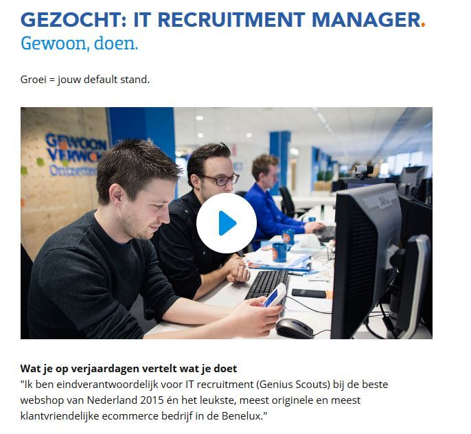 Het laat maar weer zien: durven onderscheidend te zijn wordt dus gelukkig toch vaak herkend – en beloond. En o ja, ze hebben dus ook nog een vacature. Voor een IT-recruitmentmanager. Kan nooit moeilijk zijn om die te vervullen, zou je zo zeggen, met zoveel fans…
