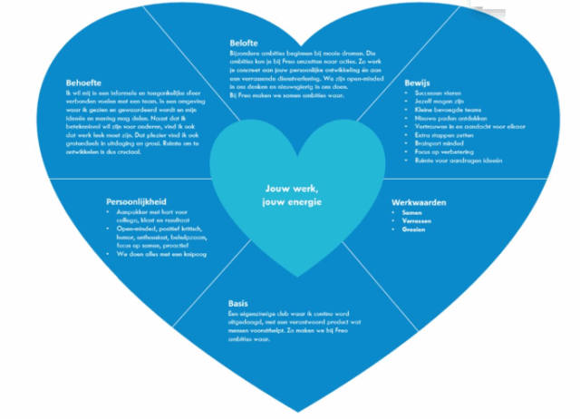 ‘Samen, groeien en verrassen.’ Dat is kort gezegd de Employer Value Proposition van kredietverstrekker Freo, 100% dochter van Rabobank, en in Nederland vooral bekend als voormalig sponsor van landskampioen PSV. Zo’n belofte aan je kandidaten en werknemers is natuurlijk mooi, maar hoe geef je dat vervolgens ook handen en voeten? Hoe zorg je dat het meer wordt dan een slogan aan de muur?