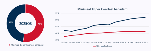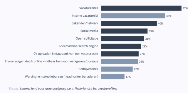 Echt actief hoeven ze misschien ook niet op zoek; het is namelijk een groep die ook uit zichzelf al veel benaderd wordt door andere werkgevers, zo blijkt. Althans: ruim de helft zegt minimaal eens per kwartaal wel een vacature te krijgen doorgespeeld van een andere organisatie. Alhoewel aan de andere kant ook zéér opvallend is dat maar liefst 32% zegt nóóit benaderd te worden.