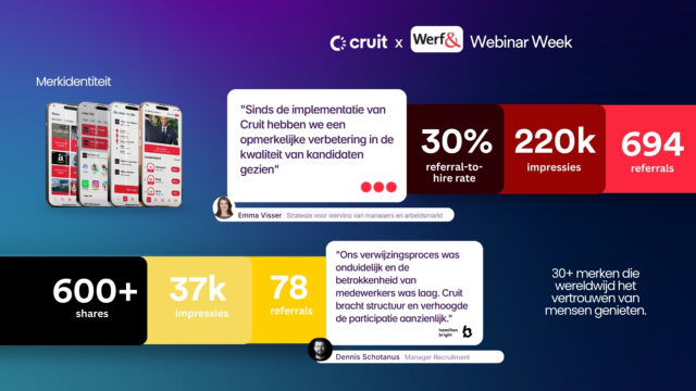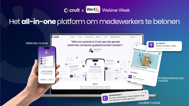 We kennen Cruit als leverancier van employee referral software. Wie zijn referralproces wil automatiseren, kan bij het bedrijf terecht, zodat medewerkers die andere potentiële medewerkers aandragen daar makkelijk mooie (micro-)beloningen voor kunnen verdienen. Maar als co-founder Thijs Visser in de komende Webinar Week te gast is, wil hij het daar eigenlijk niet over hebben. Want referrals kunnen belonen, dat is natuurlijk mooi en heel belangrijk. ‘Dat staat ook nog altijd fier overeind’, zegt hij. Maar als je dat eenmaal in de vingers hebt, waarom zou je dan het product dat je hebt niet ook nog voor andere doelen gebruiken?